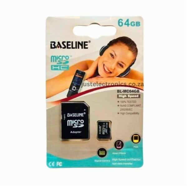 With this Baseline 64GB microSD memory card you can fit more on your phone and move your data easily between devices. The Micro SD adapter allows the memory card to be used in standard SD Card slots, compatible with all SDHC labeled host devices. This memory card provides excellent reliability, making it ideal for storing images, videos, and other important data.