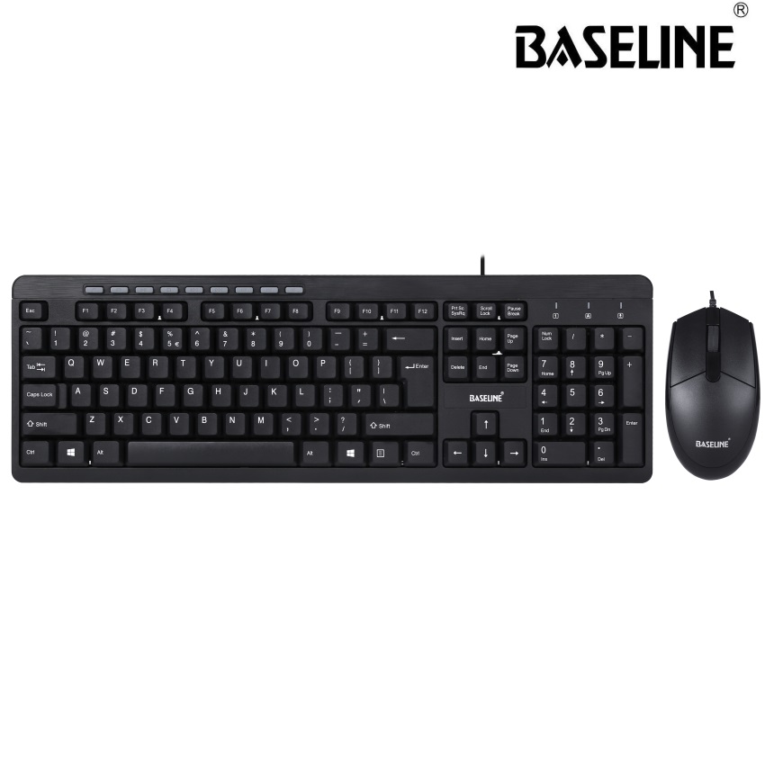 Looking for an affordable keyboard and mouse combo for your workplace or home office? Try Baseline’s Wired Keyboard and Mouse with convenient plug-and-play USB connectivity, you can be up and working in minutes. This durable wired keyboard and mouse combo puts the things you do most just a touch away. Instantly access play/pause, volume, the internet, email and more with a quick press of a key. The included mouse provides smooth, precise tracking in a comfortable design for effortless navigation.