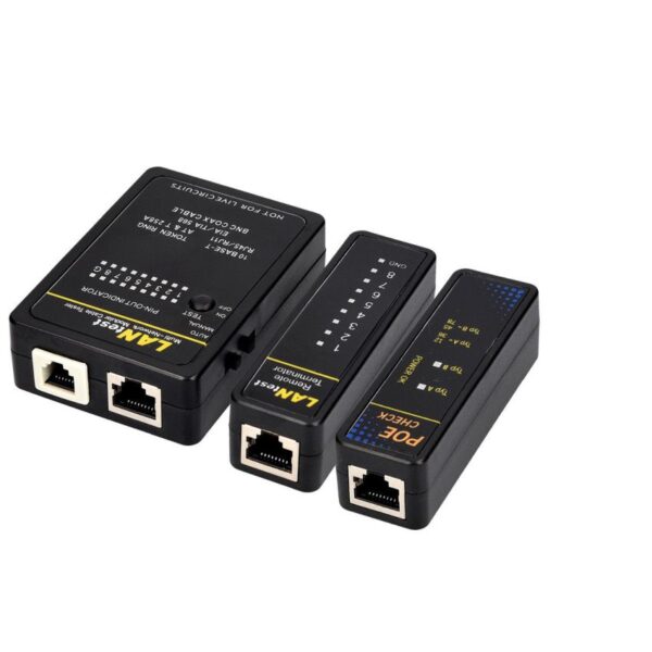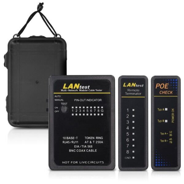 With this cable tester you can easily check if your network cabling is correct and immediately detect if an Ethernet cable is not installed correctly.