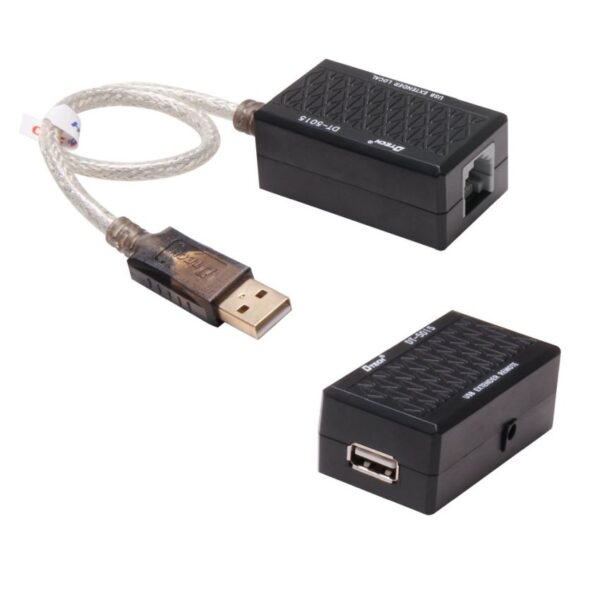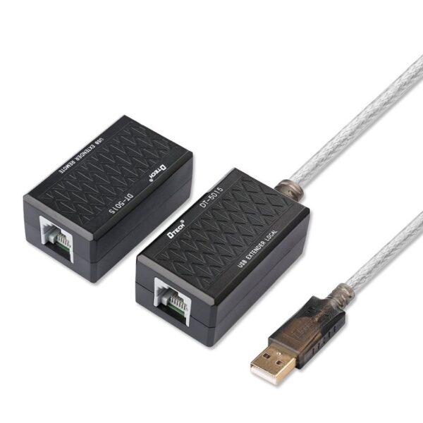 Extend your USB 2.0/1.1 connection to distances up to 60 meters using this DTech USB Extender over Cat5/Cat6. This simple USB adapter converts USB signals into a form that can be transmitted over Ethernet cable, then reassembled into a standard USB signal at the other end. This allows you to extend your USB connection to distances up to 60 meters, almost 10 times the length limit of standard USB cabling.