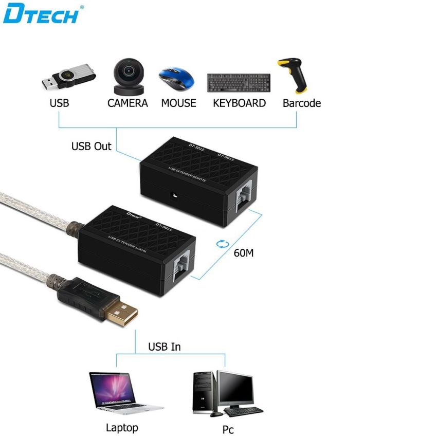 DTech 60M USB Extender Over Cat5/6