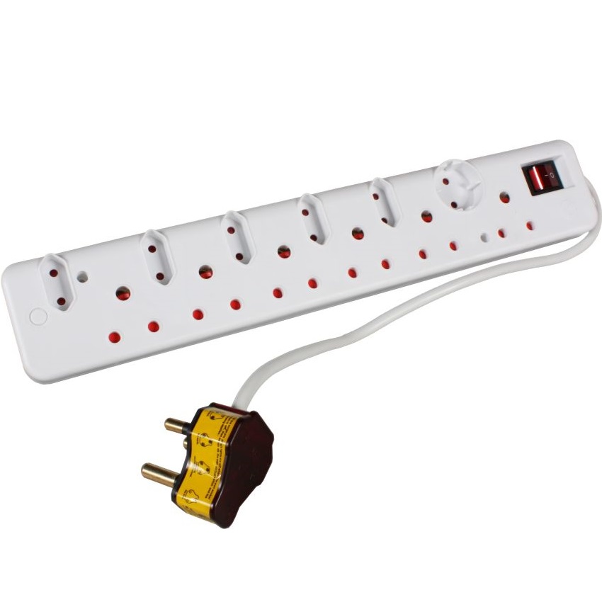 The Ellies 12 way surge protection multiplug has 5 x 2 pin Euro slots, 1 x 2 pin Schuko socket and 6 x 3 pin sockets. It converts your single plug point in to multiple sockets. The extension cord allows you to extend your reach by 0.5m.