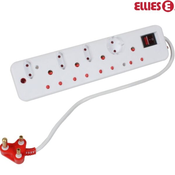 This medium surge protected 8-way Multi –plug has 3 Euro slots, 1 Schuko socket and 4 x 3 pin sockets. It converts your single plug point into multiple sockets. The extension cord allows you to extend your reach by 0.5m.