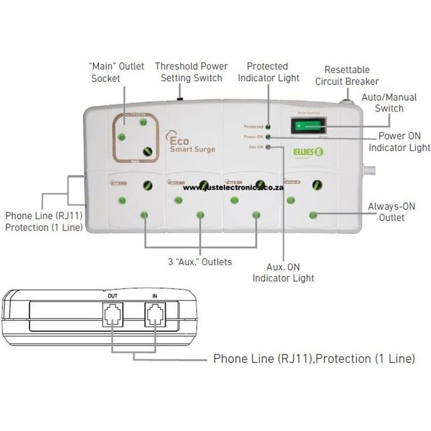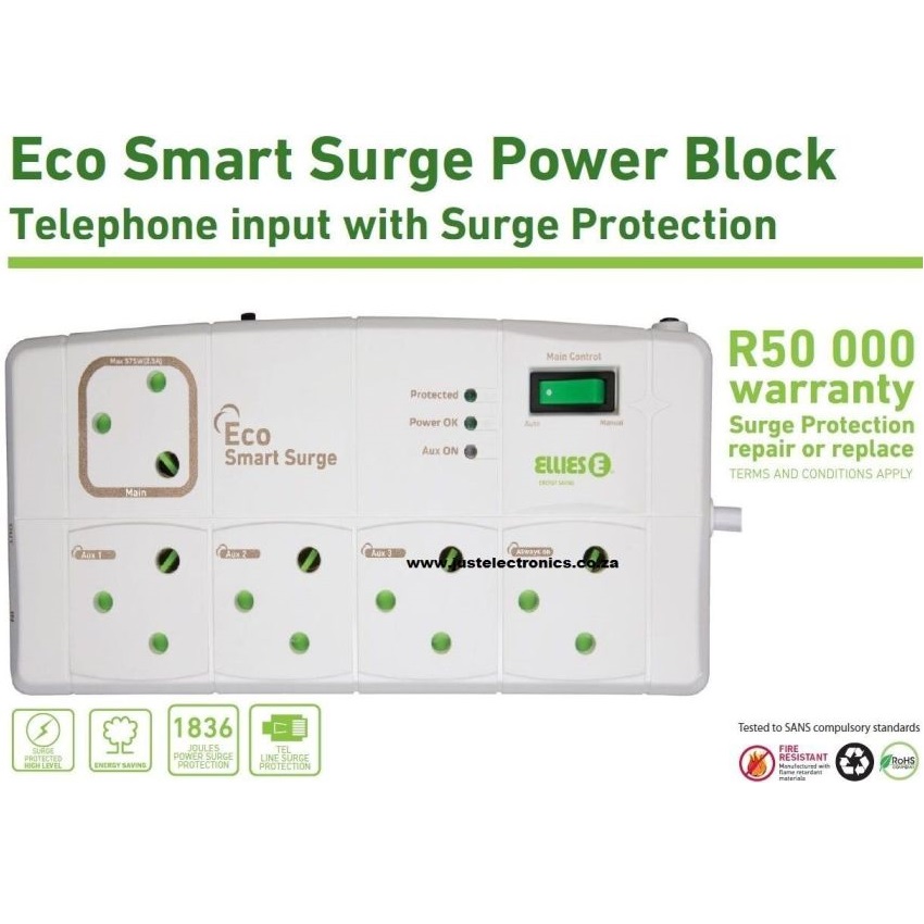 Eco Smart Surge Power Block Telephone Input With Surge Protection R50 000 Warranty