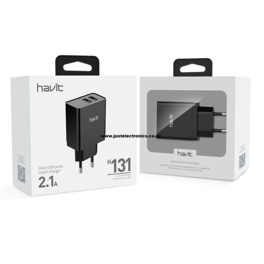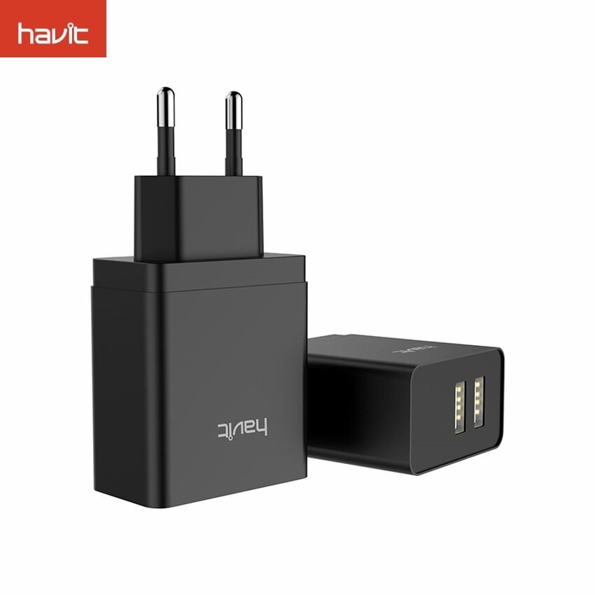 Keep must-have devices fully charged and ready to go with the Havit 2-Port USB wall charger for charging up to two devices at a time, great for phones, tablets, and other devices. Lightweight and compact for convenient portability; charging cable not included