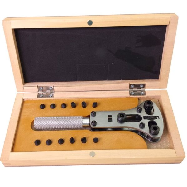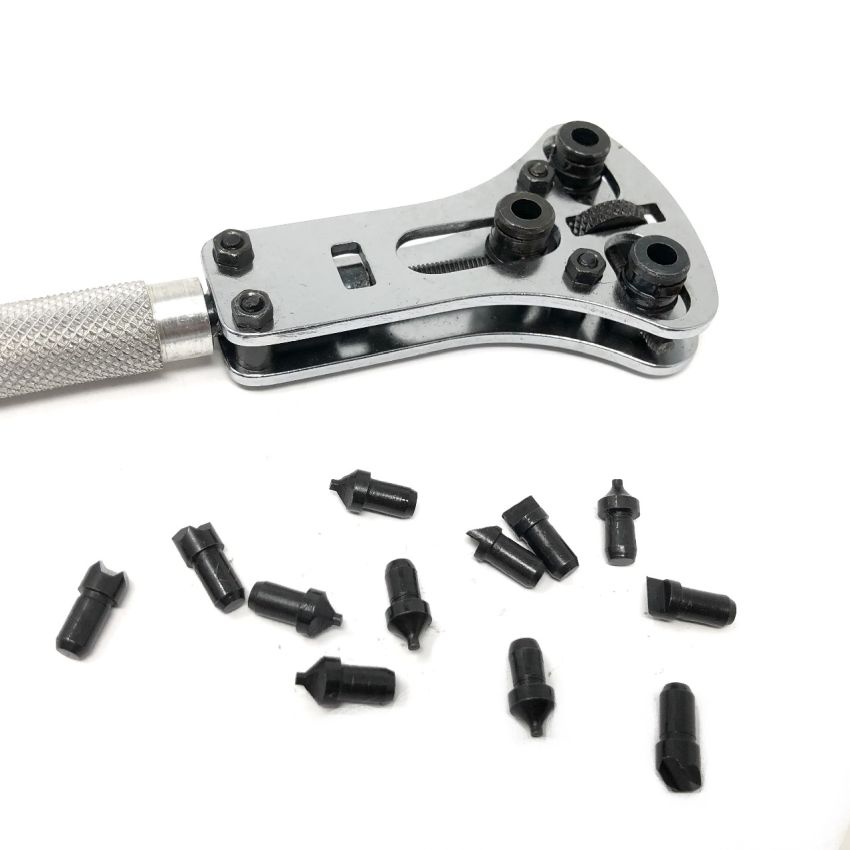 • Adjustable case opener, ideal for opening and closing screw on watch cases