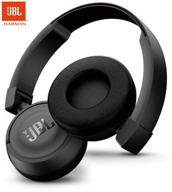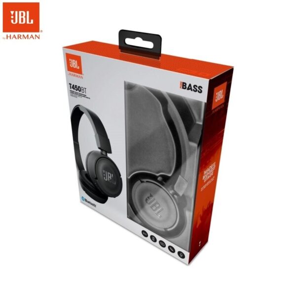 Introducing JBL T450BT on-ear wireless headphones. They’re flat-folding, lightweight, comfortable and compact. Under the hood, a pair of 32mm drivers punch out some serious bass, reproducing the powerful JBL Pure Bass sound you’ve experienced in much bigger venues. Music and call controls/microphone are placed on the earcup. And because your music should go where you go, you’ll get up to 11 hours of uninterrupted audio playback on a single charge.