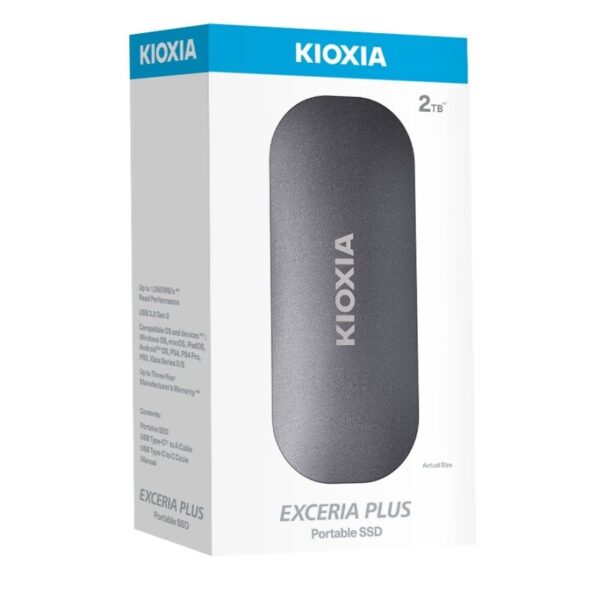 Meet the KIOXIA EXCERIA PLUS Portable SSD series a combination chic and timeless design and KIOXIA’s SSD technology utilizing BiCS FLASH 3D flash memory that delivers read speed of up to 1,050MB/s. Well-suited for on-the-go users and content creators, the EXCERIA PLUS Portable SSD series prioritizes portability with a shockproof housing that fits up to 2TB of data in the palm of your hand.