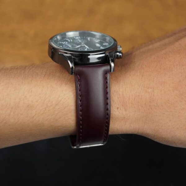 Upgrade your watch’s appearance with this sleek and durable dark brown leather strap, perfect for those who appreciate both style and quality.