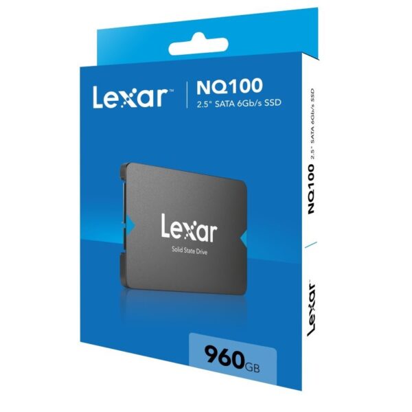 Improve your existing system’s performance with the Lexar® NQ100 2.5” SATA III (6Gb/s) SSD. This easy upgrade gives you faster boot-ups, application load times,and data transfers with read speeds of up to 550MB/s The NQ100 SSD is shock