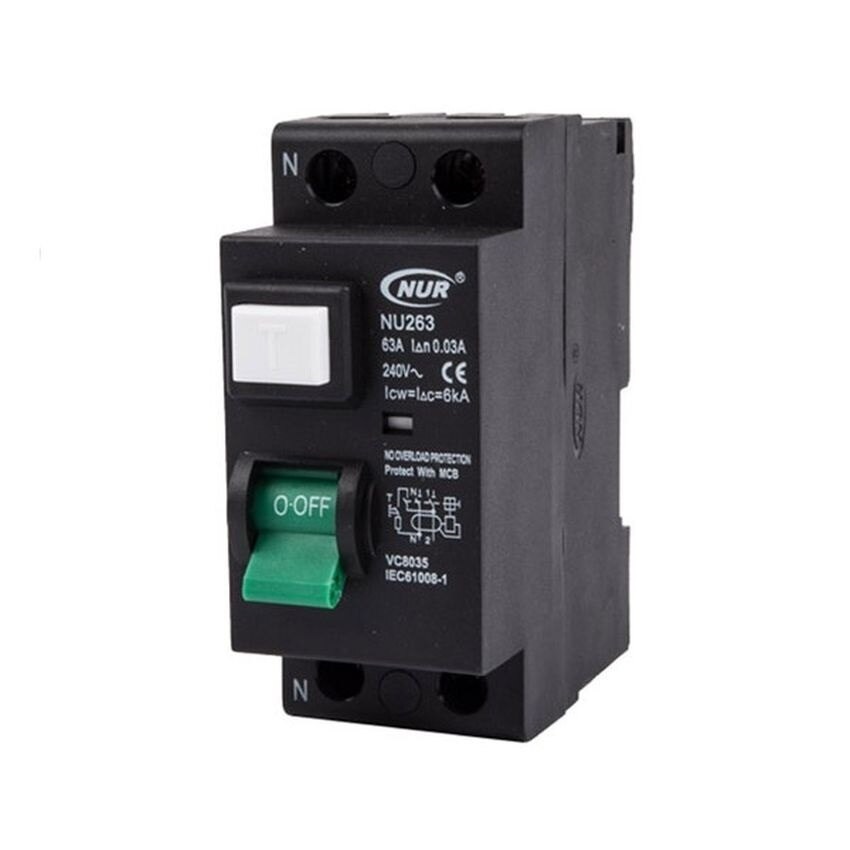 NUR Double Pole Earth Leakage 63Amp For Mini Din Rail
