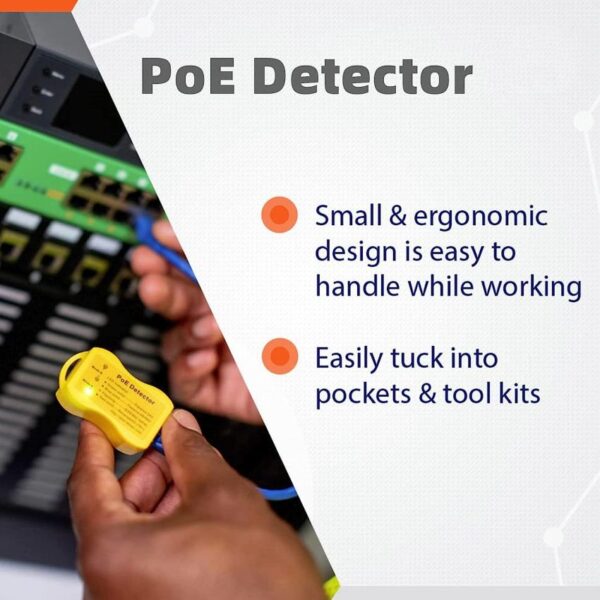 Purpose-built for field work, the PoE Detector for Passive and 802.3af/at delivers quick results with simple LED indicators. Use it during camera deployments, VoIP phone rollouts, wireless access point installs, or when auditing unknown injectors and switches. It’s light, pocket-sized, and designed for everyday use in networking, security, and SMB environments.