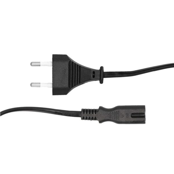 Replace your overused or misplaced power cable, or just get some extra cords for convenience. Connect your explora decoder power supply, battery chargers, laptop power supplies, AV equipment, video game consoles, and other equipment with non-polarized IEC C8 power receptacle. This power cord features a  C7 plug on one end and a 2-pin plug on the other end. The C7 coupler is commonly known as a “figure-8”, “infinity”, or “shotgun” plug, due to its shape.