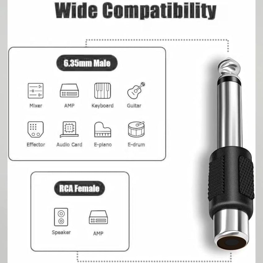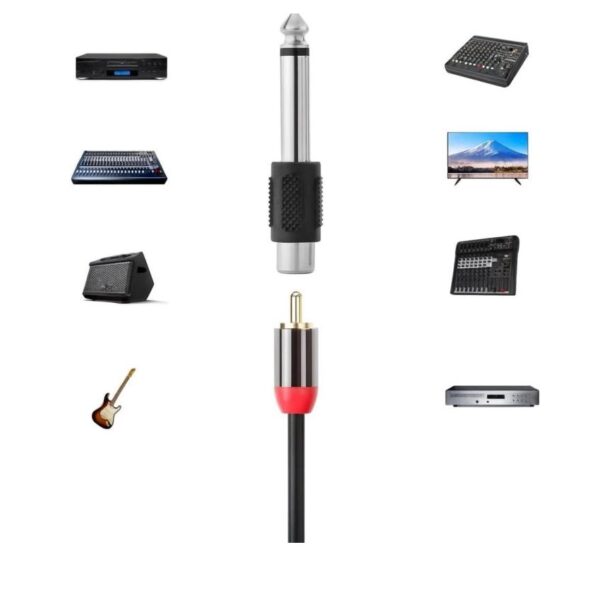 Designed for durability, the adapter features a robust metal connector with corrosion-resistant contacts. Compatibility is broad and flexible. You can connect RCA outputs from DVD players, media boxes, TV’s, or audio interfaces directly into 6.3mm mono inputs found on mixers, amplifiers, guitar amps, keyboards, or professional sound equipment. Eliminate the need for complex cable replacements while streamlining your setup.