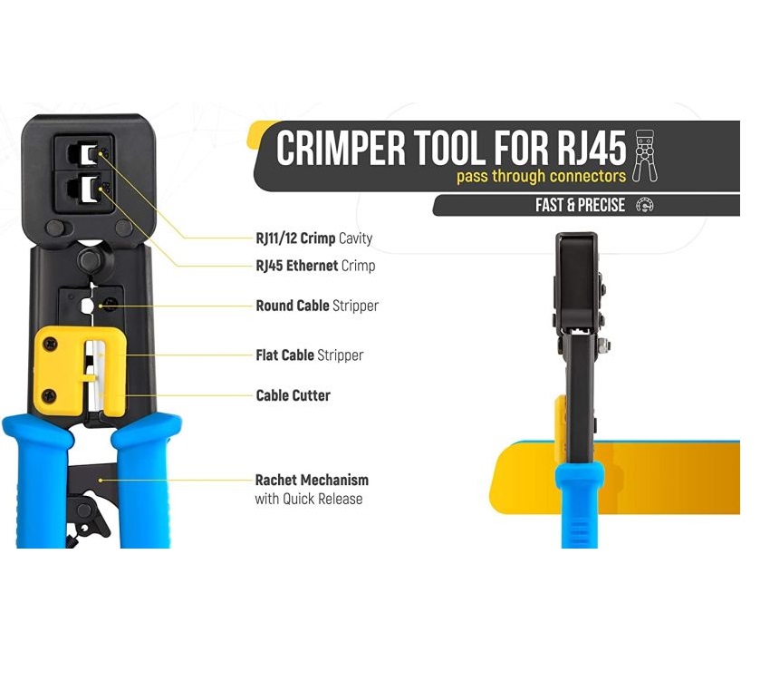 The tool is compatible with all EZ RJ45 Cat5e & Cat6 Connectors as well as all standard modular plugs. The ratcheted, high leverage and stable platform allows this tool to create consistent, repeatable terminations.