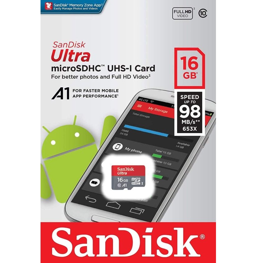 The SanDisk Ultra® microSD™ UHS-I card gives you the freedom to shoot, save and share more than ever before. SanDisk Ultra microSD card has room for even more hours of Full HD video and delivers transfer speeds of up to 98MB/s to help you move that content fast. Ideal for Android™ smartphones and tablets, the card loads apps faster with A1-rated performance.