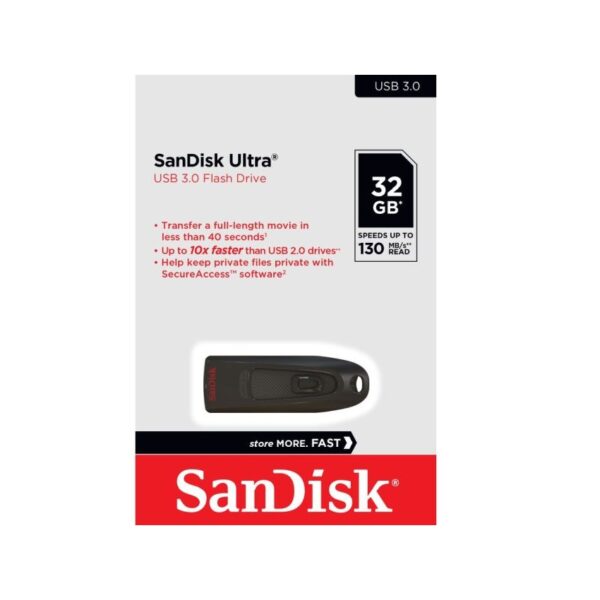 The SanDisk Ultra USB 3.0 Flash Drive includes SanDisk SecureAccess software, which lets you set up a password-protected private folder on your drive. Your files will be secured with 128-bit AES encryption to help keep them confidential, even when sharing the drive with others.