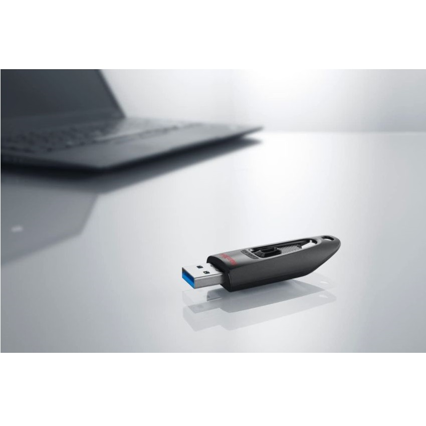With its sleek black design, the SanDisk Ultra USB 3.0 Flash Drive is as stylish as it is practical. This compact and portable drive can easily travel with you in a pocket or handbag.