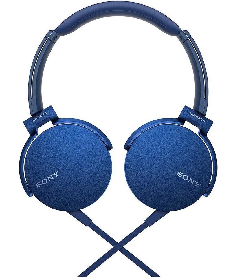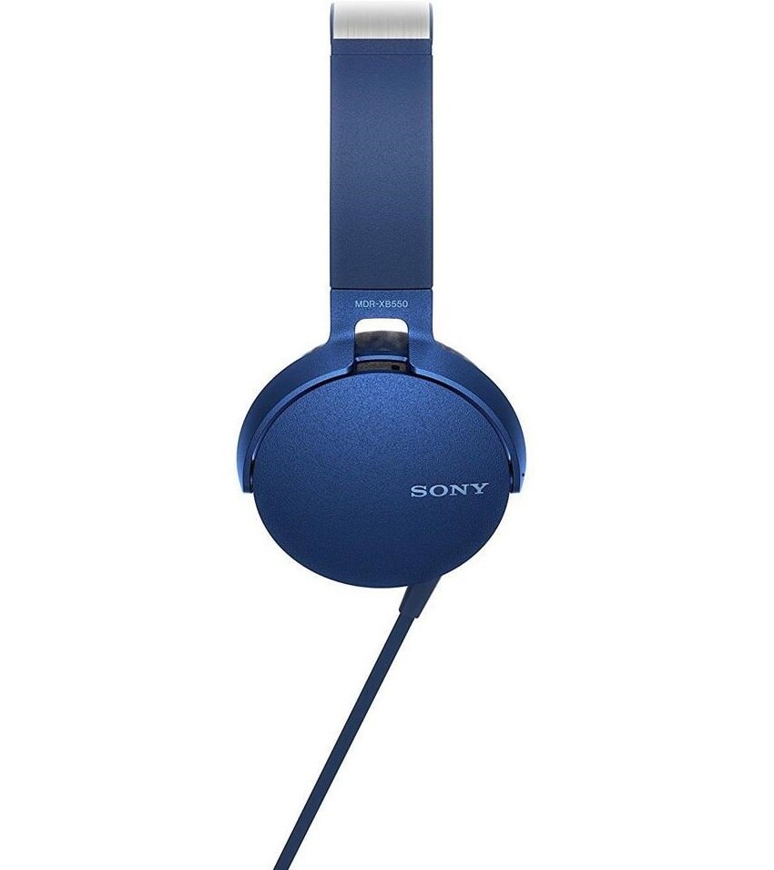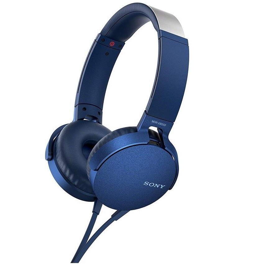 Turn up the thump with a pair of Sony XB550AP EXTRA BASS Headphones in blue. These headphones are designed with powerful bass response in mind and have cushioned earpads and an adjustable metal headband for comfort. An in-line remote enables you to play/pause and skip tracks, and it has a built-in microphone for taking calls.