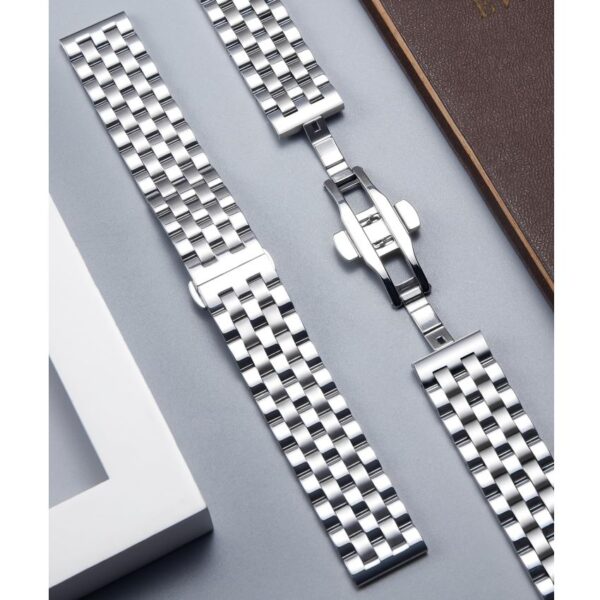 This bracelet uses solid stainless steel links to handle daily use with confidence. As a result, you get a bracelet that feels substantial on the wrist and maintains its shape over time. Additionally, the polished outer finish elevates your watch instantly and keeps the look clean and professional.
