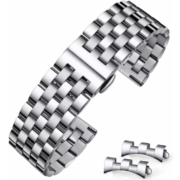 Give your watch a sharper, more premium look with a men’s stainless steel watch bracelet built for everyday wear. This solid steel Jubilee-style bracelet delivers a classic, polished finish that suits business, casual, and formal outfits. Moreover, it includes a push-button deployant clasp for secure, convenient fastening