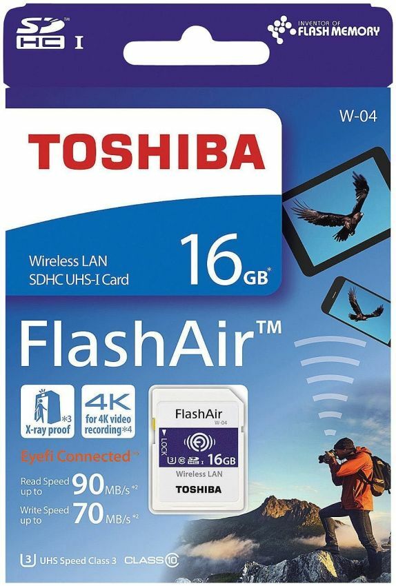 Use the latest version Toshiba FlashAir W-04 SD Card together with the FlashAir mobile App and select the shots you like to share (PULL Type). Or you can even have all your pictures and videos immediately stored on your mobile phone (PUSH Type) with the Keenai mobile app. Up to seven devices can access FlashAir from Windows PC (Explorer) or Mac (Finder) via WiFi. FlashAir W-04 delivers speedy data transfers so you can quickly upload images and videos. Transfer your images from your camera to any wireless enabled device, instantly. The new FlashAir cards also offer UHS speed class 3 to support 4K video recording*3. They can be used exactly like a regular SD Card and so can be used in any digital camera with an SD Card slot.