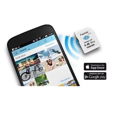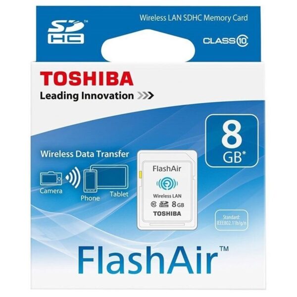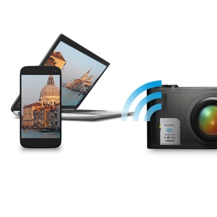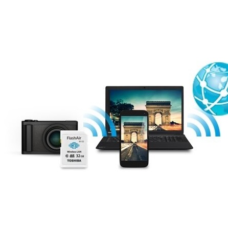 Gone are the days of switching SD cards between devices. The innovative Toshiba FlashAirâ„¢ SD card series comes with Wi-Fi built in, so data transfer to your workstation, tablet or smartphone is easier than ever. Save time at a photoshoot, share your images or videos instantly with friends and enjoy the convenience of leading technology from Toshiba.