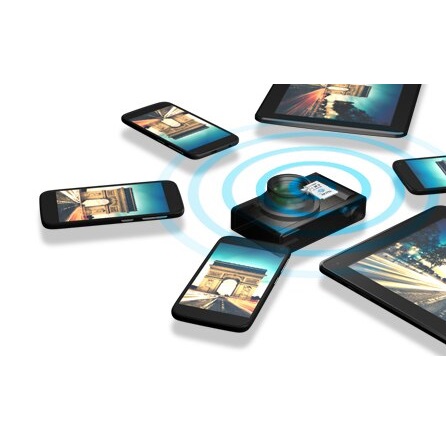 The FlashAirâ„¢ SD card acts as an access point allowing up to seven devices such as tablets, smartphones, and laptops to access the data stored within the card simultaneously.