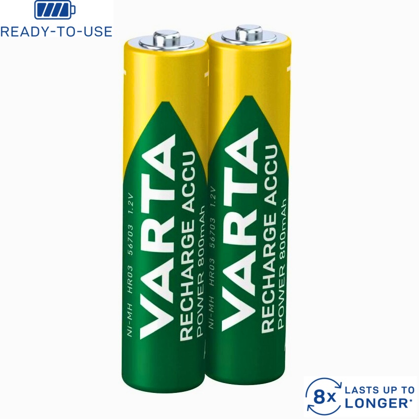 Order your VARTA AAA 800mAh Rechargeable Batteries (2-Pack) today and save with long-lasting performance!