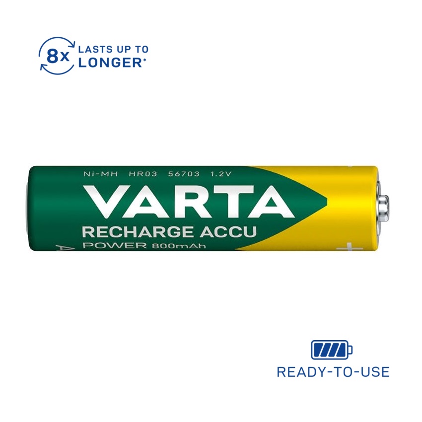 Varta Recharge Accu Power AAA 800mAh Rechargeable Batteries 4 Pack blend high performance with environmental responsibility, offering a durable and efficient power source for a broad spectrum of devices. Their rechargeability ensures that your gadgets are always powered, providing convenience and reliability while supporting sustainable energy use. Whether for personal electronics or household gadgets, these Varta batteries deliver the quality and performance you expect, making them a smart choice for all your AAA battery needs.
