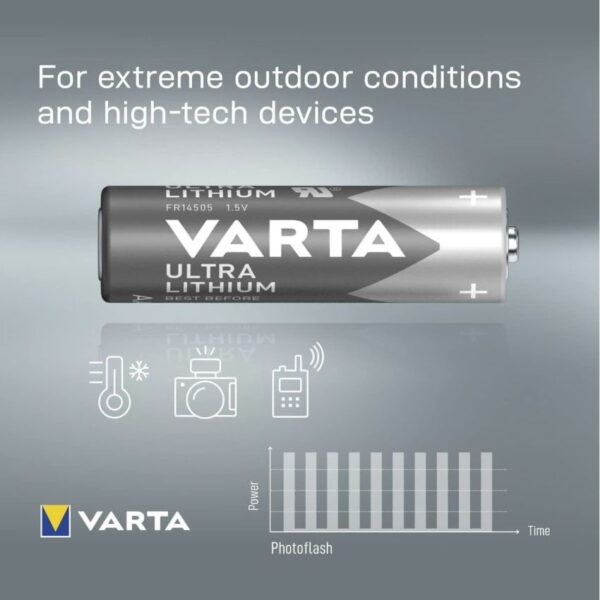 If you rely on gear that must work first time, every time, choose VARTA Ultra Lithium AA batteries. Purpose-built for high-drain electronics, these 1.5V primary lithium cells keep cameras, GPS units, photoflash, smart sensors and two-way radios running with consistent power delivery. Theyre engineered for reliable performance in harsh outdoor conditions and rapid power bursts, exactly where ordinary alkaline cells fade.