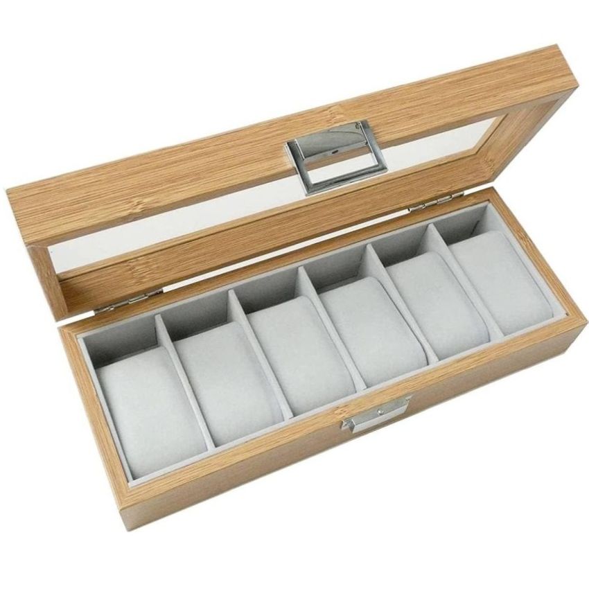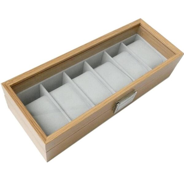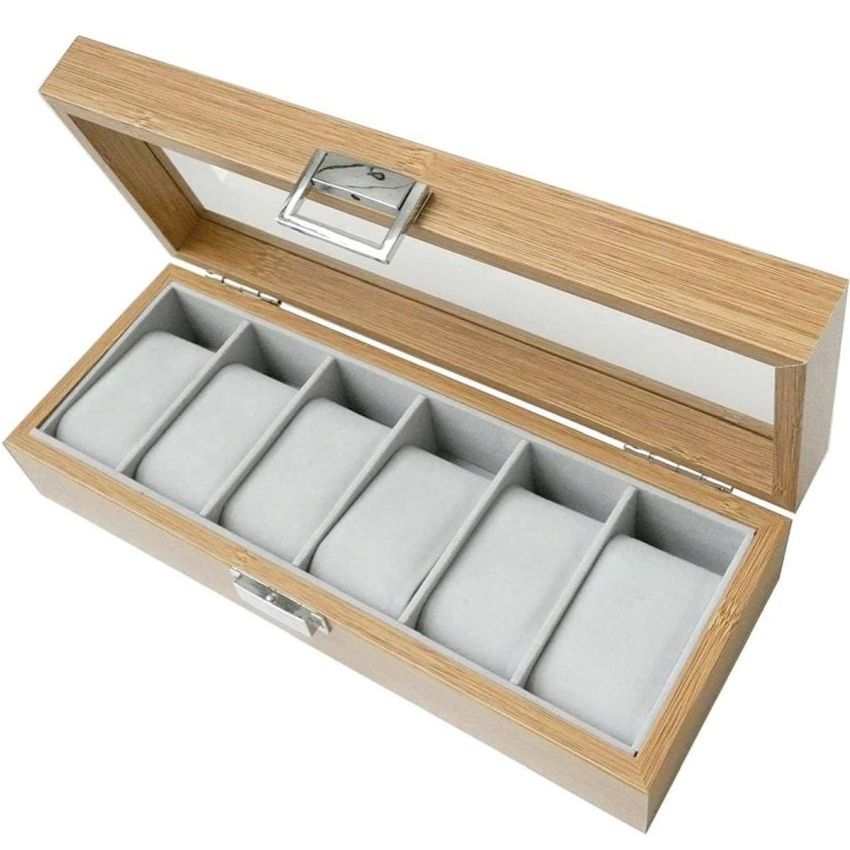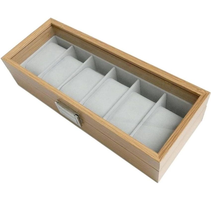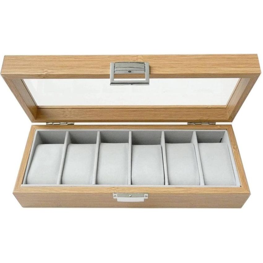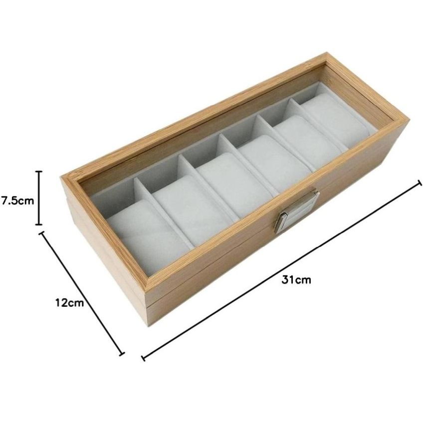 Wooden Watch Box Display Case Organizer 6 Slot Bamboo